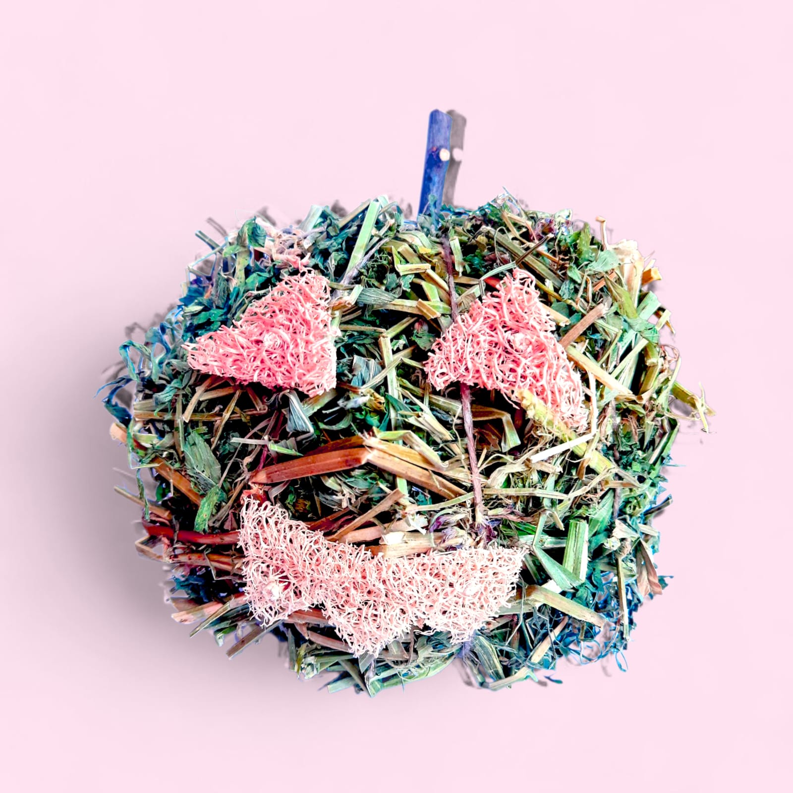 Nuestro clásico de temporada 🎃. La Smile Calabaza es un juguete 100 % comestible y artesanal, creado especialmente para la colección limitada Bunnyween. Elaborada a base de alfalfa seleccionada, con aplicaciones de lufa natural y palitos frutales, todo amarrado con cordel de cáñamo natural y relleno de flores de manzanilla 🌼.