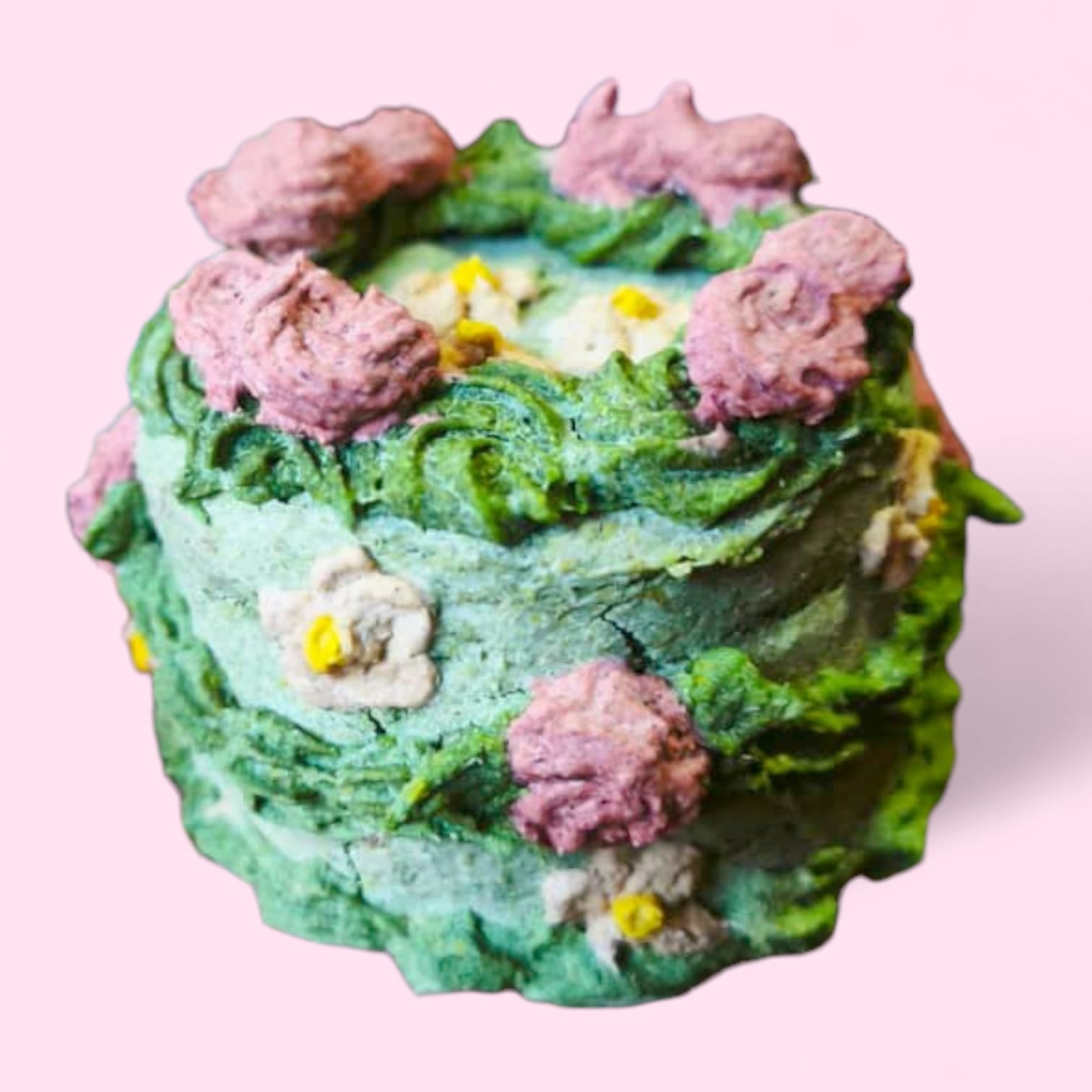 La Torta Dulce Flor mantiene la misma base que tanto aman, pero con un diseño renovado lleno de detalles florales que la hacen aún más especial. Está elaborada a base de heno de ballica, con un suave relleno de crema de plátano y menta, logrando un equilibrio fresco, aromático y delicioso.